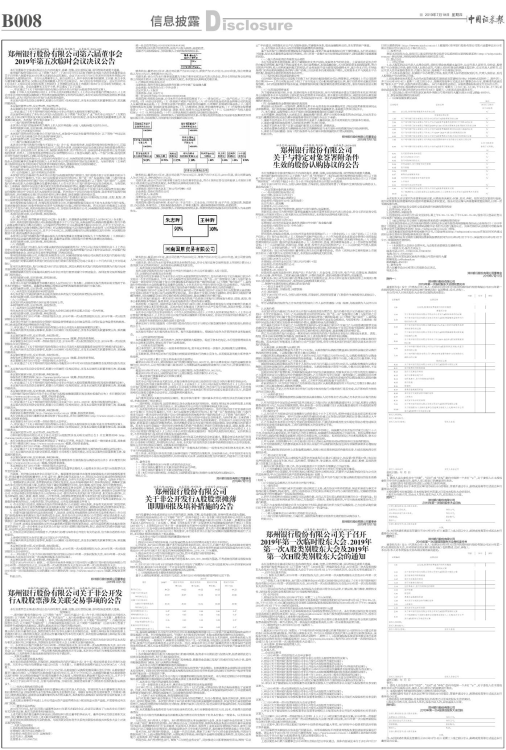 郑州银行股份有限公司第六届董事会2019年第五次临时会议决议公告