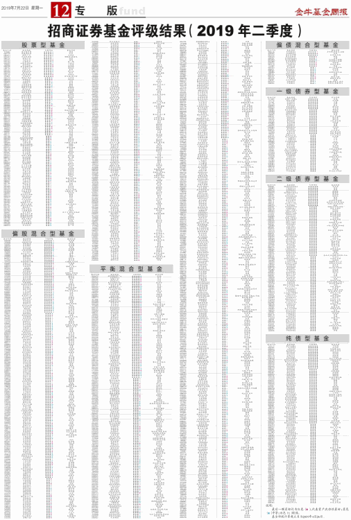 招商证券基金评级结果(2019年二季度)
