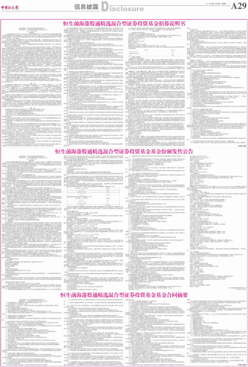 6、招募说明书、本招募说明书:指《恒生前海港股通精选混合型证券投资基金招募说明书》及其定期的更新