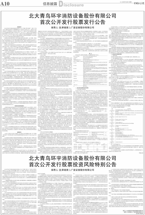 三、拟参与本次发行申购的投资者,须认真阅读2019年7月22日(T-6日)刊登于《中国证券报》、《上海证券报》、《证券时报》和《证券日报》上的《北大青鸟环宇消防设备股份有限公司首次公开发行股票招股意向书摘要》及披露于巨潮资讯网(网址www.cninfo.com.cn)的招股意向书全文,特别是其中的“重大事项提示”及“风险因素”章节,充分了解发行人的各项风险因素,自行判断其经营状况及投资价值,并审慎做出投资决策。发行人受到政治、经济、行业及经营管理水平的影响,经营状况可能会发生变化,由此可能导致的投资风险应由投资者自行承担。
