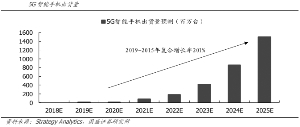 5G网络作为第五代移动通信网络,其峰值理论传输速度可达每秒数十Gb,这比4G网络的传输速度快了数百倍。StrategyAnalytics预测5G智能手机出货量将从2019年的200万部增加到2025年的15亿部,年复合增长率为201%。目前,已有多家手机厂商跟进5G步伐,发布了5G手机时间计划。7月23日OPPO官方宣布Reno5G版正式获得中国5G终端电信设备进网许可证,Reno5G版目前已三证在手,具备了5G手机商用的能力。此前,华为6月26日官方宣布华为Mate20X获得中国首张5G终端电信设备进网许可证,这标志着国产5G手机上市步伐加快,5G商用将进一步提速。6月份工信部向包括三大运营商和中国广电在内的四家企业也都正式发放5G牌照,上游运营商和下游手机厂商的5G进展情况均超预期。