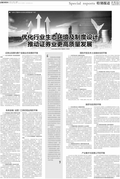 当然在欧美国家,行业主管机关并没有运用行政化的手段去人为调节不同规模券商的发展走向。当下强调证券业要紧密服务实体经济,服务在国民经济中发挥重要作用的民营经济及中小微企业,中小券商大多属于省域券商,与域内企业天然亲近,能够更好地体现直接金融的真正内涵。我们呼吁管理层给不同规模的券商创造公平的竞争环境,减少不必要的因规模而设置的“玻璃门”“弹簧门”,鼓励高质量的基于市场化的竞争,确保将证券业服务实体经济这一理念落实到实处。(本专栏由中国证券业协会与中国证券报联合推出)