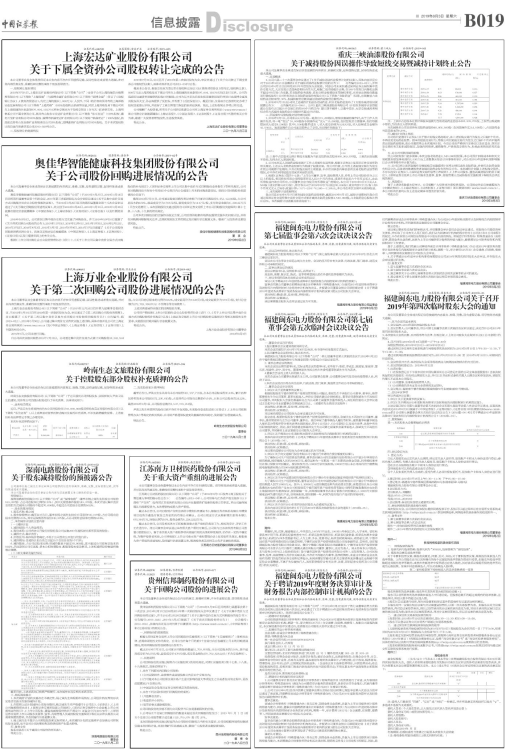 证券代码:000993 证券简称:闽东电力 公告编号:2019临-35