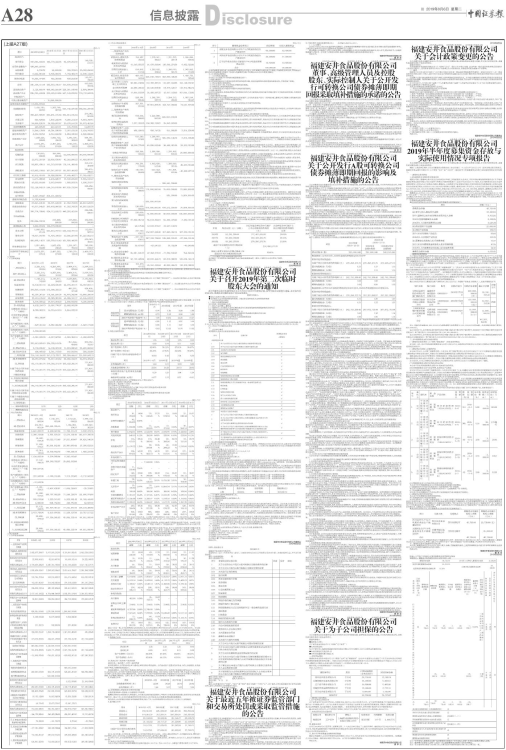本次福建安井食品股份有限公司(以下简称“公司”)执行《关于修订印发 2019年度一般企业财务报表格式的通知》(财会[2019]6号),仅对财务报表项目列示产生影响,对公司财务状况、经营成果和现金流量不产生影响。
