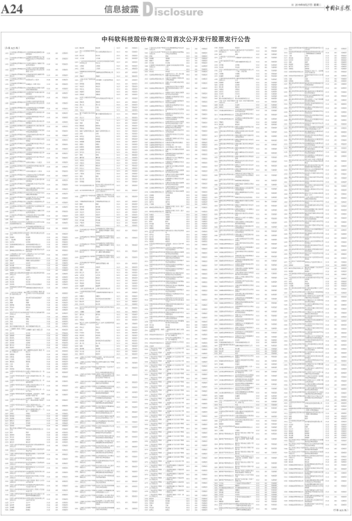 中科软科技股份有限公司首次公开发行股票发行公告