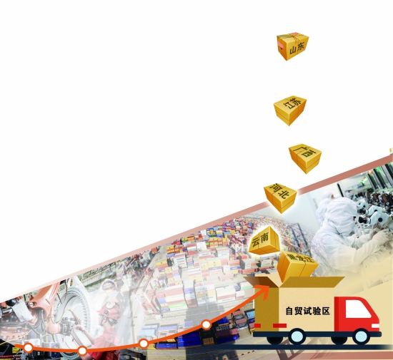 上海自贸试验区 2013年 广东、天津、福建自贸试验区 辽宁、浙江、河南、湖北、重庆、四川、陕西自贸试验区 海南自贸试验区 2018年 2017年 2015年 《总体方案》对6个自贸试验区提出了各有侧重的差别化改革试点任务。 山东自贸试验区围绕加快推进新旧发展动能接续转换、发展海洋经济,形成对外开放新高地,提出了培育贸易新业态新模式、加快发展海洋特色产业和探索中日韩三国地方经济合作等方面的具体举措。 江苏自贸试验区围绕打造开放型经济发展先行区、实体经济创新发展和产业转型升级示范区,提出了提高境外投资合作水平、强化金融对实体经济的支撑和支持制造业创新发展等方面的具体举措。 广西自贸试验区围绕建设西南中南西北出海口、面向东盟的国际陆海贸易新通道,形成21世纪海上丝绸之路和丝绸之路经济带有机衔接的重要门户,提出了畅通国际大通道、打造对东盟合作先行先试示范区和打造西部陆海联通门户港等方面的具体举措。 河北自贸试 |