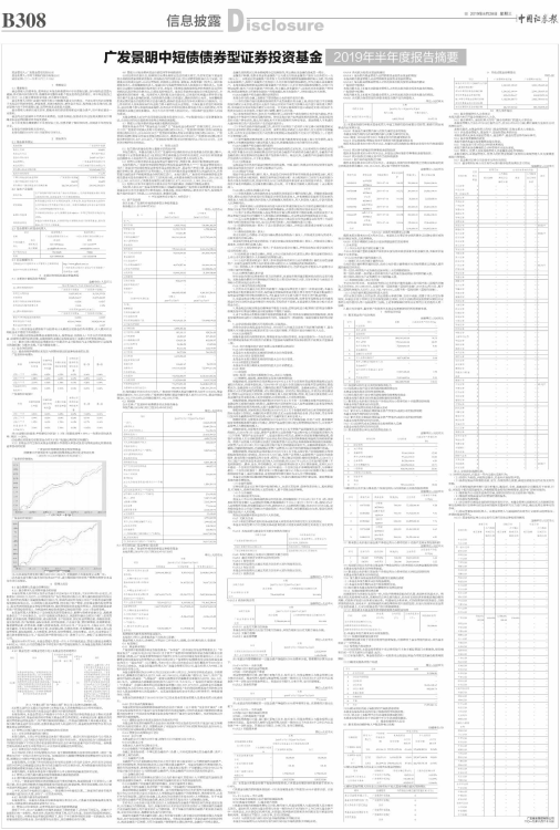 注:报告截止日2019年6月30日,广发景明中短债A基金份额净值人民币1.0150元,基金份额总额426,749,507.44份;广发景明中短债C基金份额净值人民币1.0137元,基金份额总额339,192,578.33份;总份额总额765,942,085.77份。