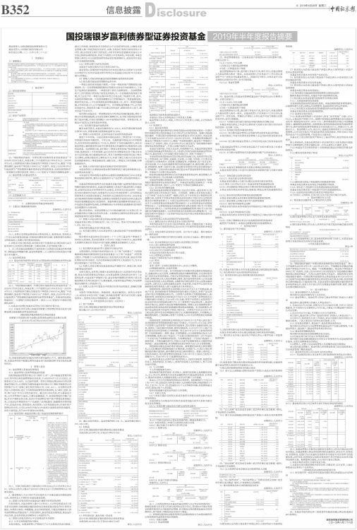 注:“国投瑞银岁赢利一年期定期开放债券型证券投资基金”于2016年3月29日成立,本基金第三个开放期为2019年4月15日—2019年4月19日。开放期结束后确认的基金资产净值低于5000万元,触发“开放期届满时,基金资产净值低于5000万元”的条件。因此,自2019年4月23日起变更为“国投瑞银岁赢利债券型证券投资基金,业绩比较基准由"一年期银行定期存款利率(税后)+1%"变更为"中债综合指数收益率"。