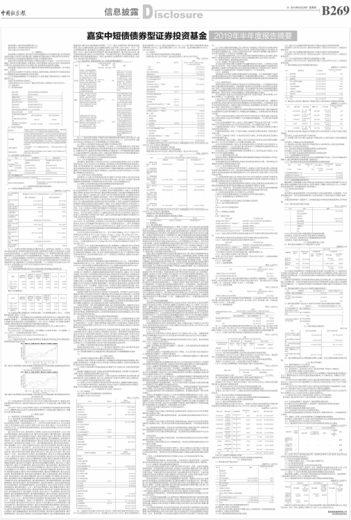 注: 本基金合同生效日为2019年1月24日,本报告期自基金合同生效日2019年1月24日起至2019年6月30日止。报告截止日2019年6月30日,嘉实中短债债券A基金份额净值1.0111元,基金份额总额250,097,716.10份;嘉实中短债债券C基金份额净值1.0096元,基金份额总额71,047,347.38份。基金份额总额合计为321,145,063.48份。