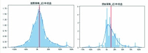 根据WIND私募基金数据统计,考察3年期收益分布图,可以看到,股票策略基金与事件驱动策略基金近3年收益分布呈正态,而债券策略、相对价值策略、宏观对冲策略、管理期货策略呈右偏分布,说明细分策略类型基金具有优选的可能性和必要性。