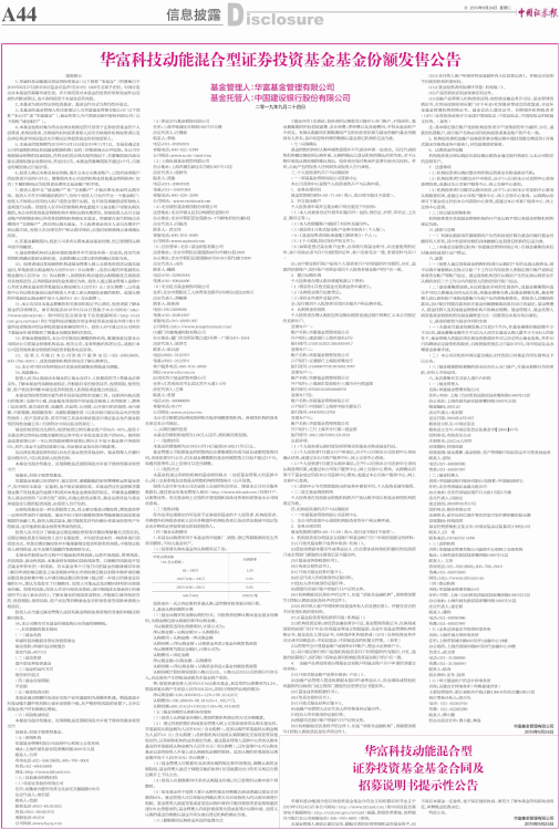 华富科技动能混合型证券投资基金基金合同全文和招募说明书全文于2019年9月24日在本公司网站(http://www.hffund.com)和中国证监会基金电子披露网站(http://eid.csrc.gov.cn/fund)披露,供投资者查阅。如有疑问可拨打本公司客服电话(400-700-8001)咨询。