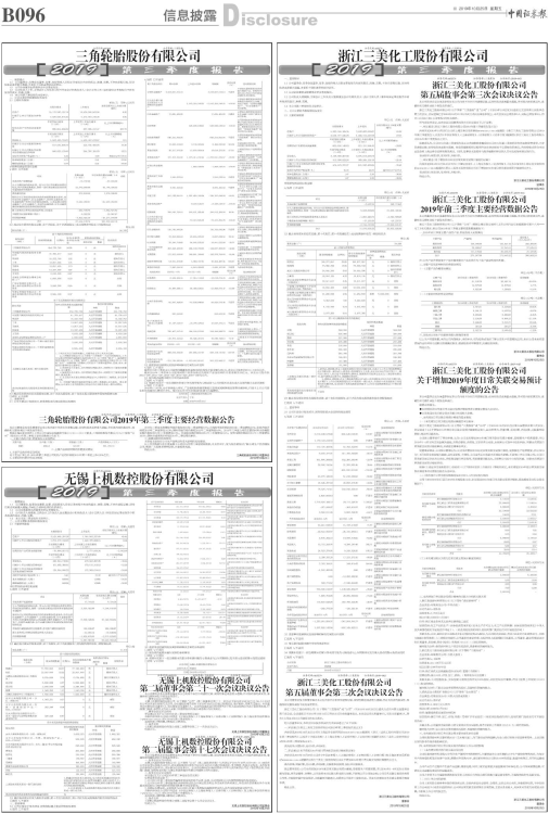 三角轮胎股份有限公司2019年第三季度主要经营数据公告