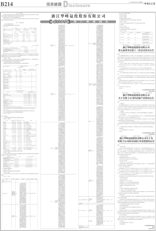 证券代码:002064 证券简称:华峰氨纶 公告编号:2019-068