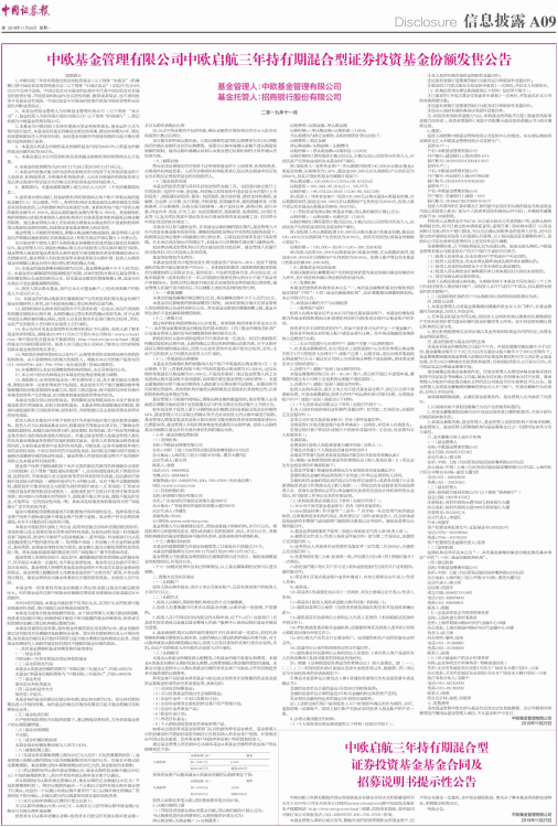 中欧基金管理有限公司中欧启航三年持有期混合型证券投资基金份额发售公告
