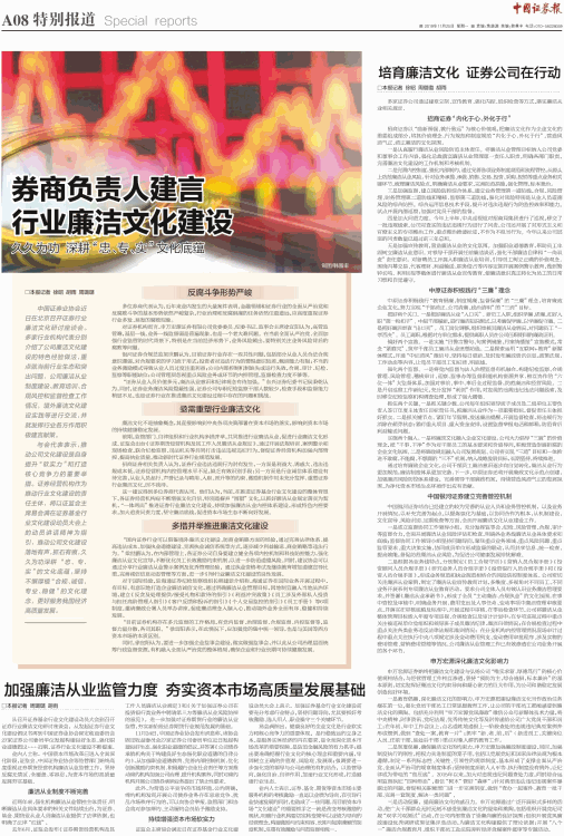 中原证券积极践行“教育倡廉、制度规廉、监督保廉”的“三廉”理念,培育廉政企业文化,努力实现“干部清正、公司清廉、政治清明”的“三清”目标。