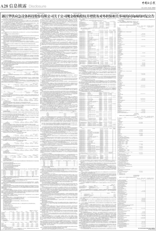 浙江华铁应急设备科技股份有限公司关于公司现金收购股权并增资及对外担保相关事项的问询函的回复公告