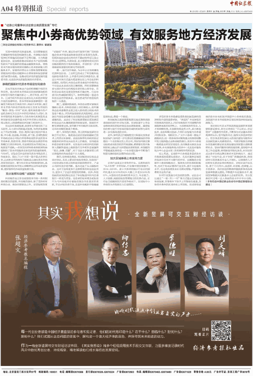 多层次资本市场建设是推进创新发展和经济转型升级的重要举措。“多层次”不仅体现在市场体系的层次上,同时也体现在不同规模的券商服务体系的差异性上。大型券商具有资金、人才和规模优势,在深耕传统业务之外,着力推进技术、业态和模式创新,引领行业发展方向并展开国际竞争。相较而言,广大中小券商一般处于跟跑状态,但一些券商具有聚焦重点优势领域集中发力取得重点业务突破的潜力,而且中小券商一般都是从特定区域起步,具有熟悉本地区企业的优势,在有效服务地方经济中(尤其是在服务地方中小企业方面)具有独特作用和优势。
