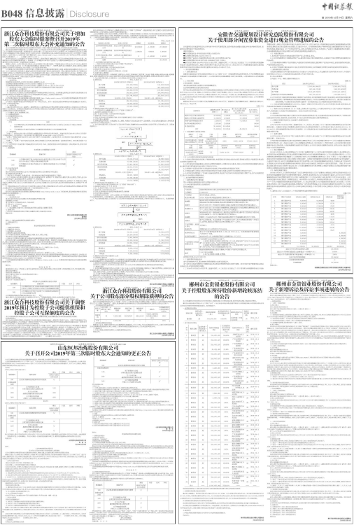 2.2019年第三次临时股东大会所有提案内容详见刊登在2019年12月10日《证券时报》、《上海证券报》、《中国证券报》、《证券日报》和巨潮资讯网(http://www.cninfo.com.cn)上的《第九届董事会第二次会议决议公告》( 公告编号:2019-055)、《第九届监事会第二次会议决议公告》( 公告编号:2019-056)。