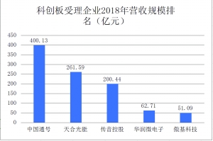 科创板受理公司2018年营收规模排名(亿元)