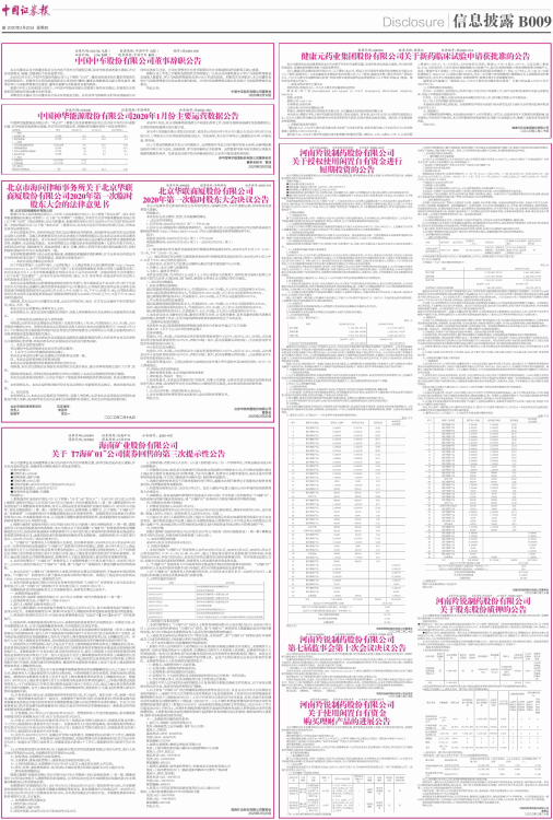 南方黑芝麻集团股份有限公司第九届董事会2020年第一次临时会议决议公告