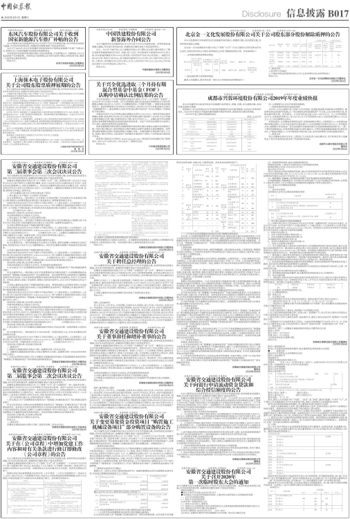 成都市兴蓉环境股份有限公司2019年年度业绩快报