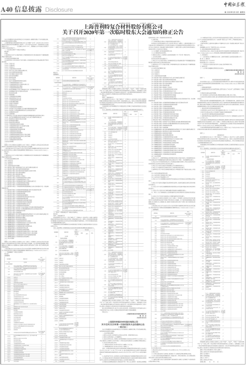 上海普利特复合材料股份有限公司(以下简称“公司”)2020年3月11日在中国证监会指定的信息披露网站上发布了《关于召开2020年第一次临时股东大会的通知公告》( 公告编号:2020-014)。原披露公告中有部分内容需予以修正,相关内容如下: