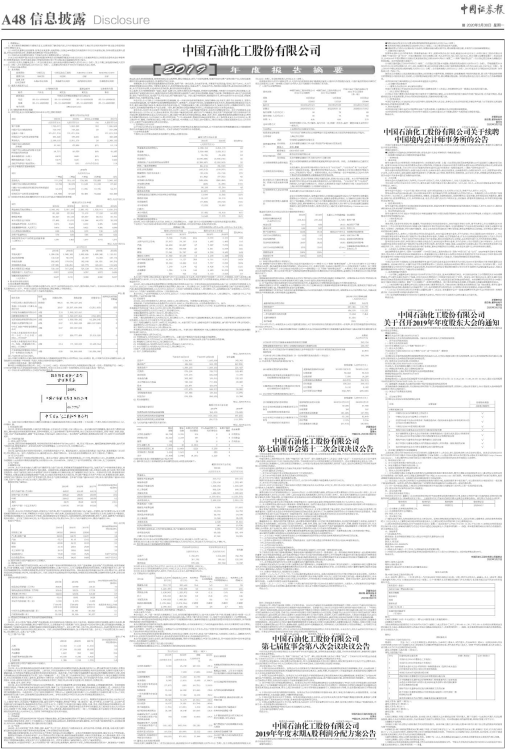 股票代码:600028 股票简称:中国石化 公告编号:2020-13