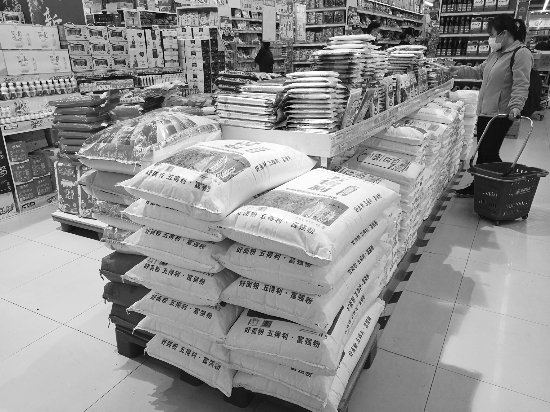 北京市海淀区某大型商超粮食销售铺位 本报记者 张利静 摄