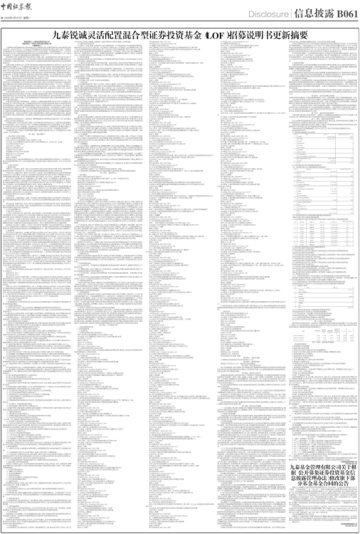 九泰锐诚灵活配置混合型证券投资基金(LOF)招募说明书更新摘要