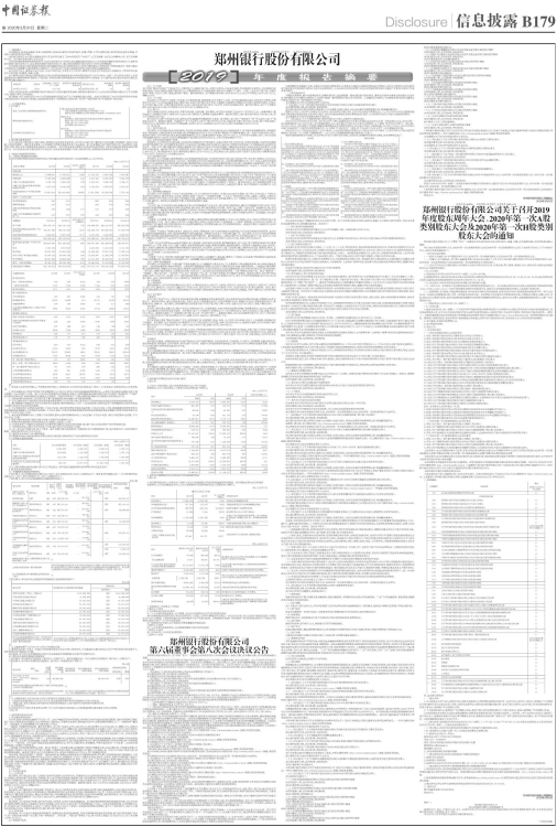 三十四、审议通过了《关于召开郑州银行股份有限公司2019年度股东周年大会、2020年第一次A股类别股东大会、2020年第一次H股类别股东大会的议案》。