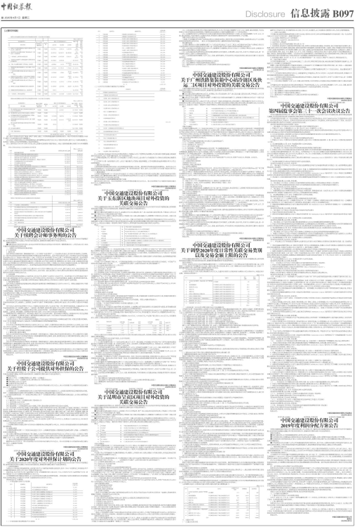 中国交通建设股份有限公司(简称中国交建、本公司或公司)董事会及全体董事保证本公告内容不存在任何虚假记载、误导性陈述或者重大遗漏,并对其内容的真实性、准确性和完整性承担个别及连带责任。