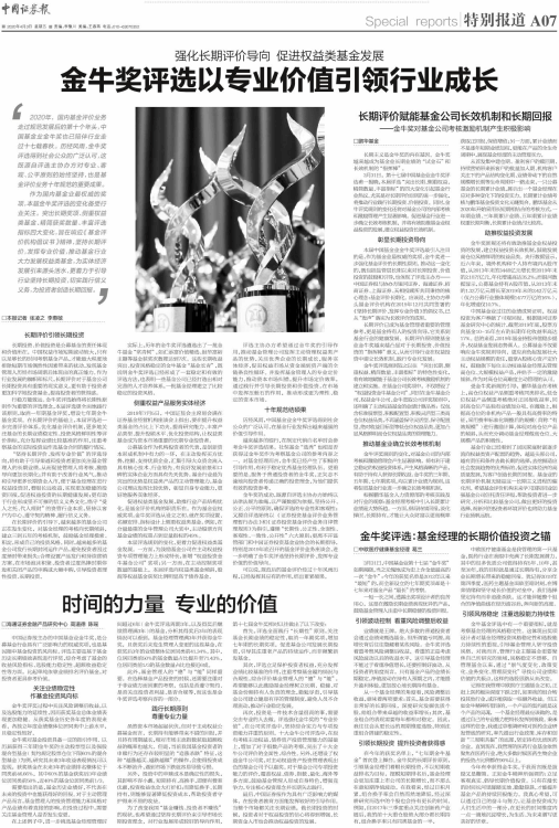 最后,中国证券报作为具有广泛影响力的媒体,在投资者教育方面能发挥较好的引导作用。当整个市场都关注长期业绩,做长期投资的时候,投资者对于权益投资的信心将得到增强,长期资金入市也会推动权益投资的发展。