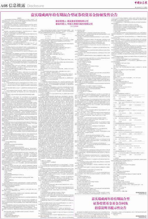 嘉实瑞成两年持有期混合型证券投资基金份额发售公告