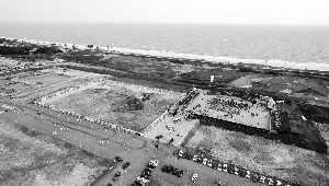 4月13日拍摄的海南自由贸易港建设项目集中开工和签约仪式海口主会场现场(无人机照片)。当日,海南自由贸易港建设项目集中开工和签约仪式在海南全省同步举行。据了解,本次集中开工项目共100个,总投资489亿元,全省集中签约项目100个,可形成投资548亿元。 新华社图文