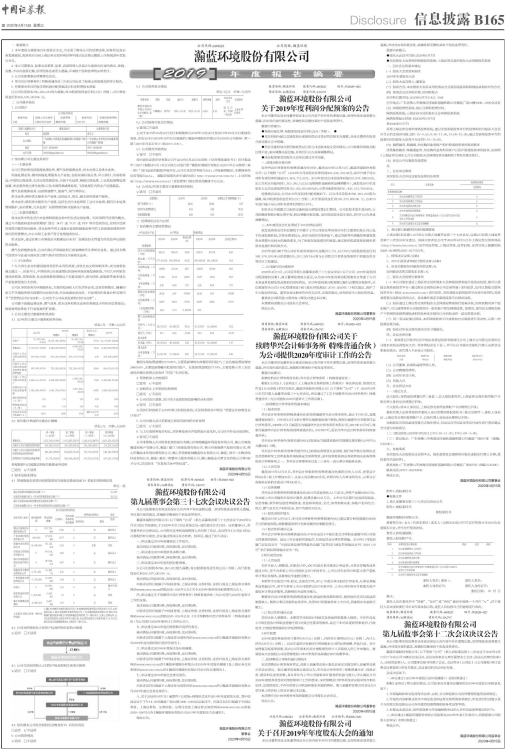 内容详见同日披露于中国证券报、上海证券报、证券时报、证券日报及上海证券交易所网站www.sse.com.cn的《瀚蓝环境股份有限公司2019年年度报告摘要》及上海证券交易所网站www.sse.com.cn的《瀚蓝环境股份有限公司2019年年度报告》。