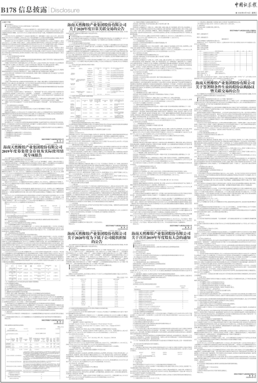 公司于2020年4月13日召开第五届董事会第三十次会议,审议通过了《海南橡胶2020年度日常关联交易的议案》,关联董事王任飞、彭富庆、蒙小亮、王兵回避表决。该议案尚需提交公司2019年年度股东大会审议批准,关联股东需回避表决。