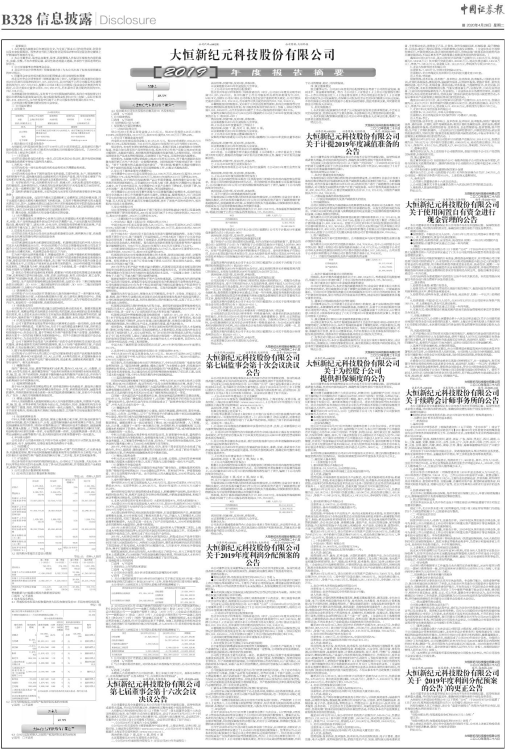 大恒新纪元科技股份有限公司(以下简称“公司”)于2020年4月28日披露了《关于2019年度利润分配预案的公告》(公告编号:临2020-007)。