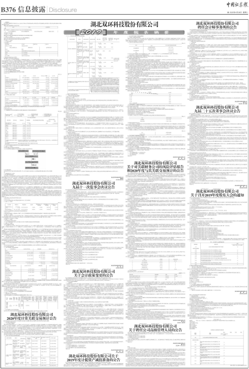 10、审议并通过了《湖北双环科技股份有限公司聘任会计师事务所的议案》,该议案还需提交公司2019年度股东大会审议。