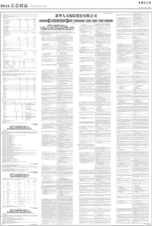 具体内容详见公司同日于上海证券交易所网站(www.sse.com.cn)披露的《新华保险2020年第一季度报告》。