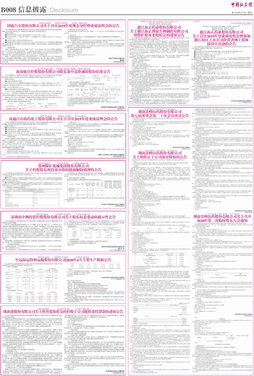中远海运特种运输股份有限公司2020年4月主要生产数据公告