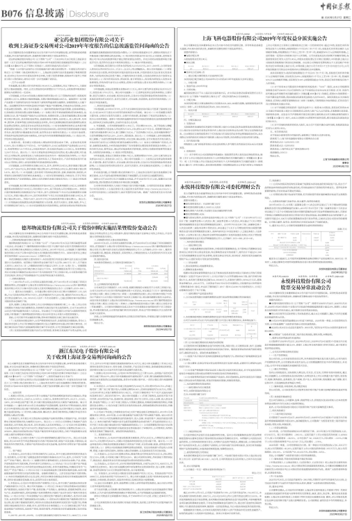 收到上海证券交易所对公司2019年年度报告的信息披露监管问询函的公告