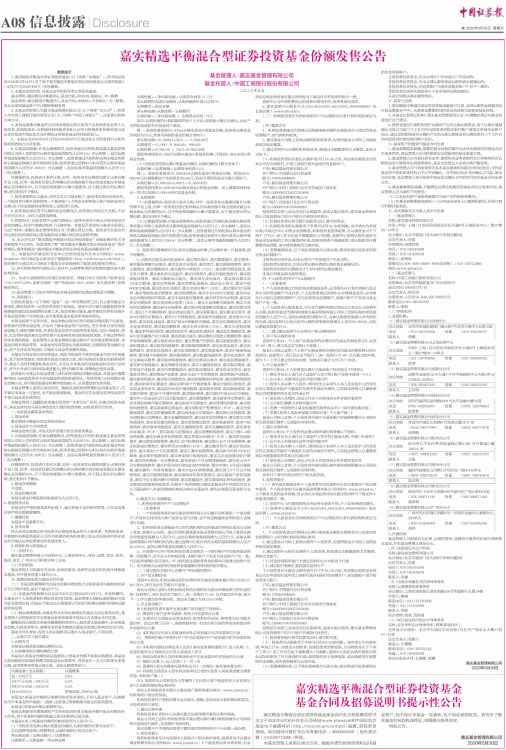 10、本公告仅对“嘉实精选平衡混合型证券投资基金”份额发售的有关事项和规定予以说明。投资者欲了解“嘉实精选平衡混合型证券投资基金”的详细情况,请详细阅读“嘉实精选平衡混合型证券投资基金招募说明书”。