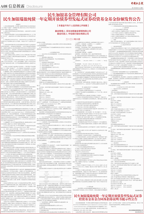 民生加银瑞盈纯债一年定期开放债券型发起式证券投资基金基金合同全文和招募说明书全文于2020年6月1日在本公司网站(www.msjyfund.com.cn)和中国证监会基金电子披露网站(http://eid.csrc.gov.cn/fund)披露,供投资者查阅。如有疑问可拨打本公司客服电话(400-8888-388)咨询。