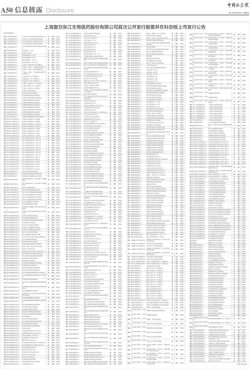 上海复旦张江生物医药股份有限公司首次公开发行股票并在科创板上市发行公告