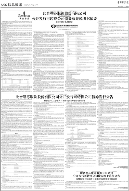 比音勒芬服饰股份有限公司公开发行可转换公司债券发行公告