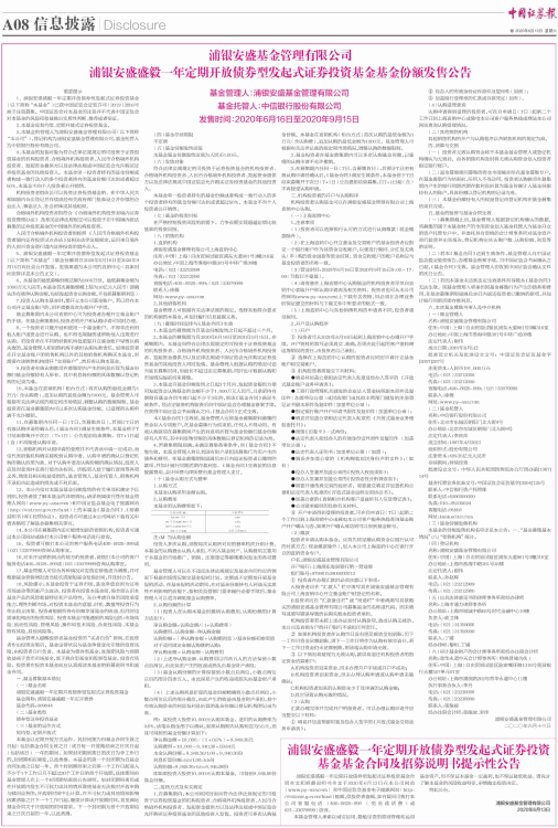 浦银安盛盛毅一年定期开放债券型发起式证券投资基金基金合同及招募说明书提示性公告