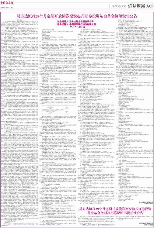 易方达恒茂39个月定期开放债券型发起式证券投资基金基金份额发售公告