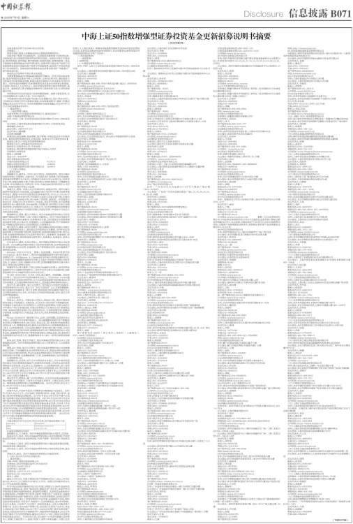 中海上证50指数增强型证券投资基金更新招募说明书摘要