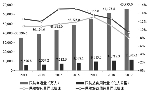 图1:2013-2019年民航旅客运输量、