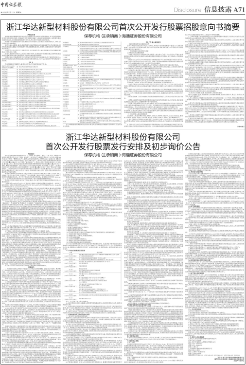浙江华达新型材料股份有限公司首次公开发行股票招股意向书摘要